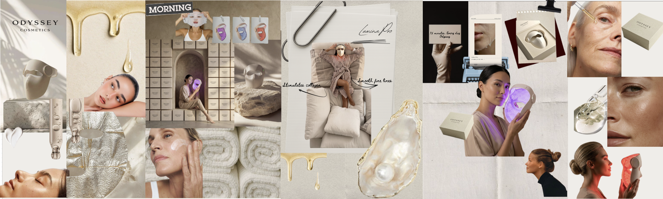 Odyssey Cosmetics is a skincare startup concept focused on LED beauty technology, offering innovative products such as LED masks, eye patches, and targeted treatments.